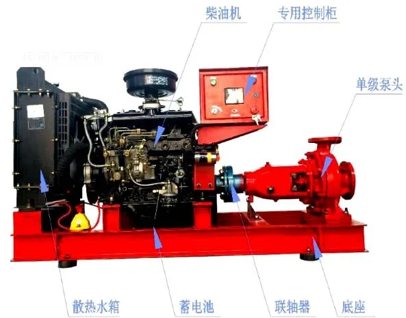 柴油機消防泵國標名稱為“工程用柴油機消防泵組”,國標型號為XBCL/Q 其中L為揚程值,Q為流量值。XBC型柴油機消防泵組是最新照國家標準為GB6245-2006《消防泵性能要求和試驗方法》。該系列產品揚程、流量范圍廣,完全能滿足倉庫、碼頭、機場、石油化工、電廠、液化氣站、紡織等工礦企業各種場合的消防供水。